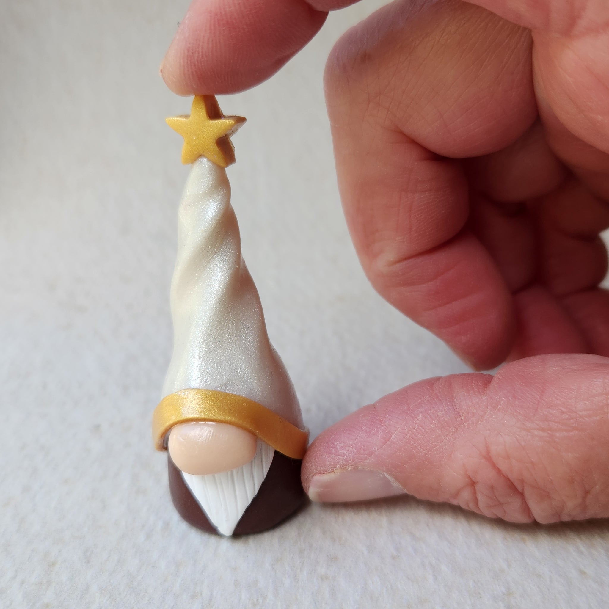 This little gnome - also called a gonk or tomte has been handmade from polymer clay and measures around 6cm tall.